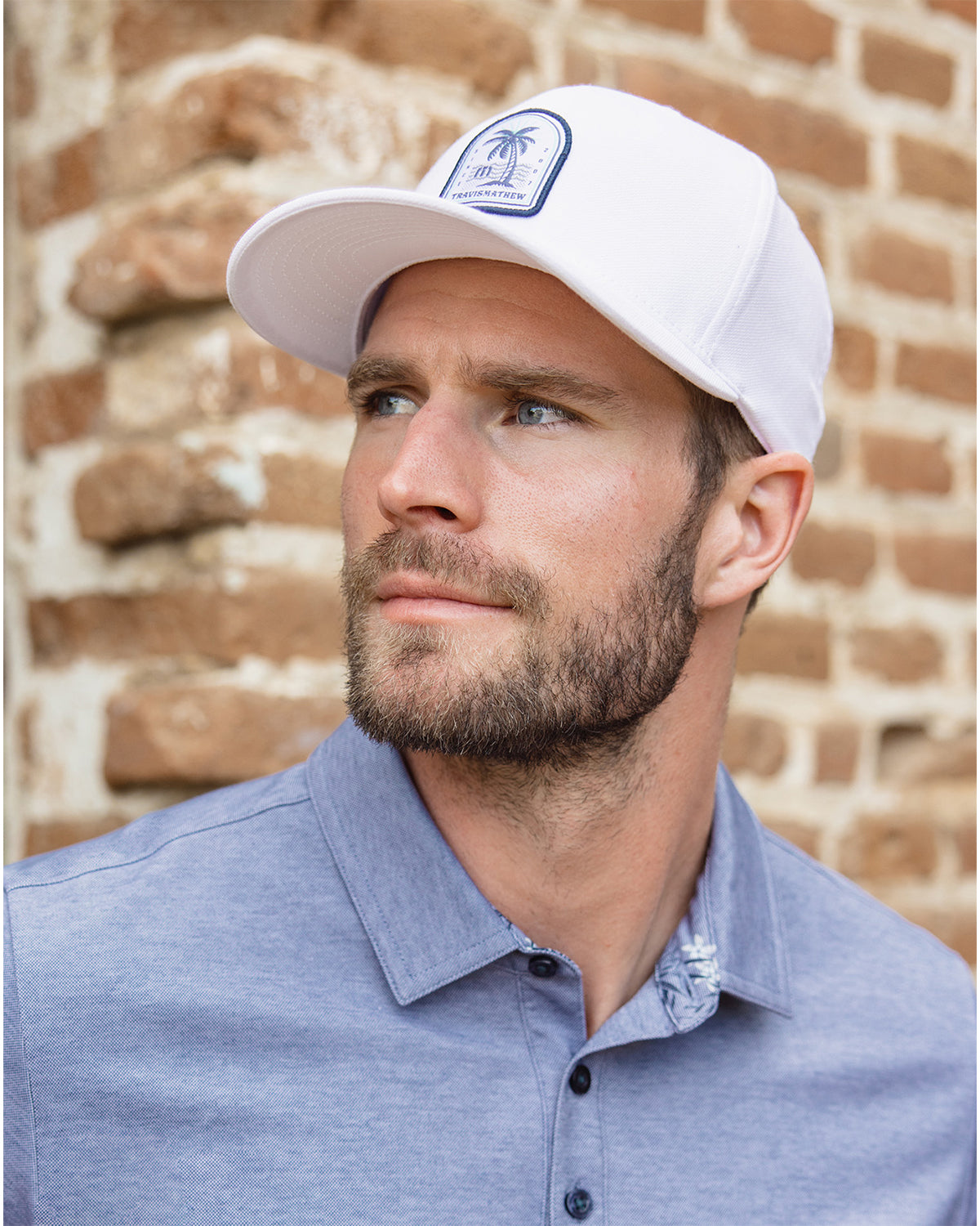 Bring island style into your day to day with a little R AND R. The fabric snapback features an updated tombstone patch depicting a beach scene for ultimate vacation vibes.