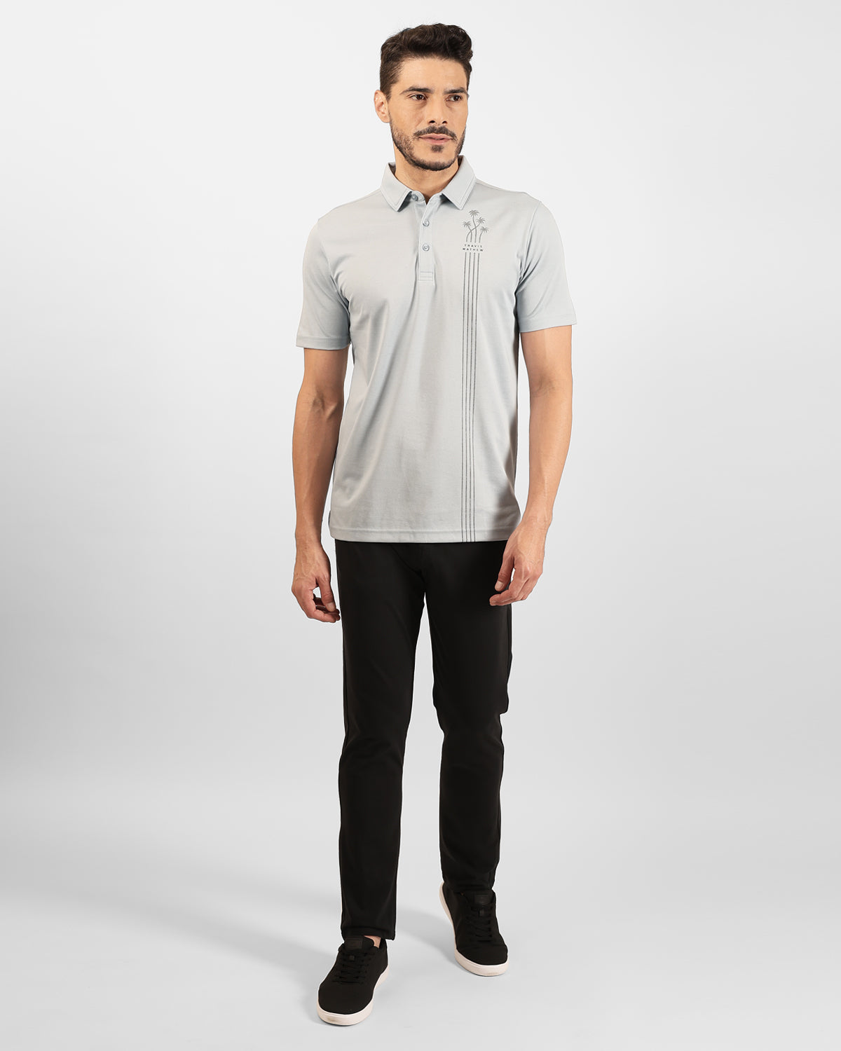 We’re giving you a perfect day in paradise, courtesy of a fresh design featuring a vertical stripe descending from a trio of interlocked palm trees. We know how much you need a vacation... so we put it on the PACIFIC VIBE polo, too. Mahalo.