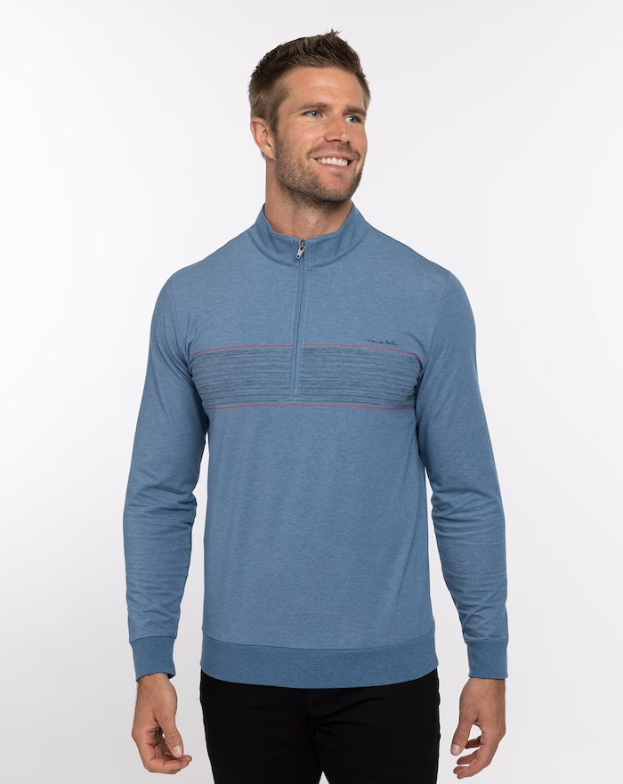 Find your lightweight layer for work or golf with the SPLASH OF COLOR quarter-zip jacket, styled with a textured chest stripe on a heathered seasonal color.